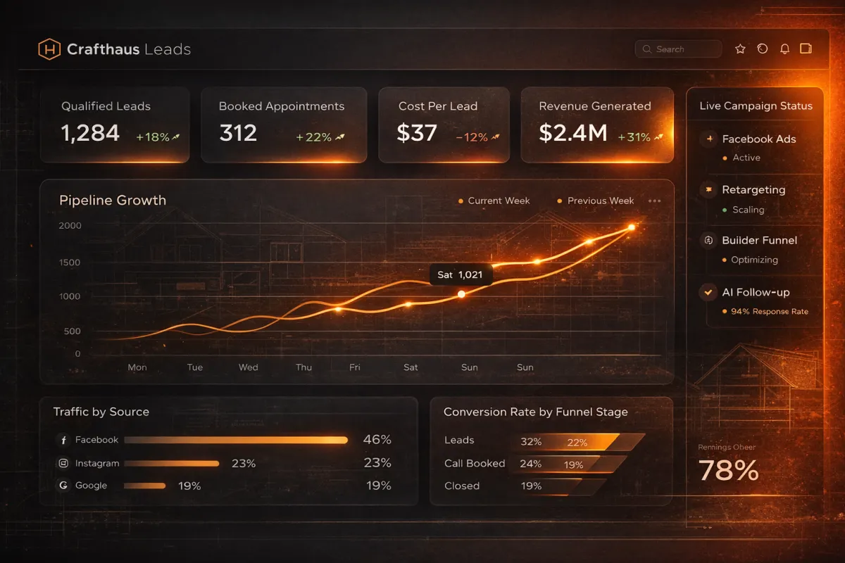 Crafthaus Leads works with only one builder per service area. We do not run competing campaigns for multiple contractors in the same territory. Your market is contractually protected to ensure no internal competition for the same homeowners.